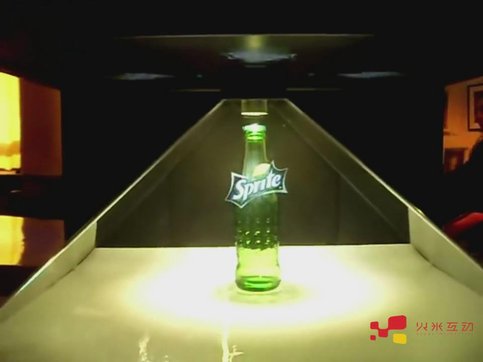 270度幻影成像是現在比較流行的展示形式,其利用鍍膜玻璃對光的折射和反射,將虛擬影像投射到成像空間里,形成一種空中成像的現象,能夠360度旋轉式的展示產品,成像高度大約在20多厘米,能夠給人一種真實的3D立體效果。