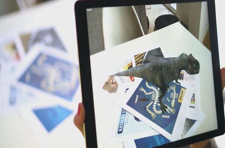 增強現實技術,是一種實時地計算攝影機影像的位置及角度并加上相應圖像、視頻、3D模型的技術,這種技術的目標是在屏幕上把虛擬世界套在現實世界并進行互動,在展覽展示中被運通的比較廣泛。