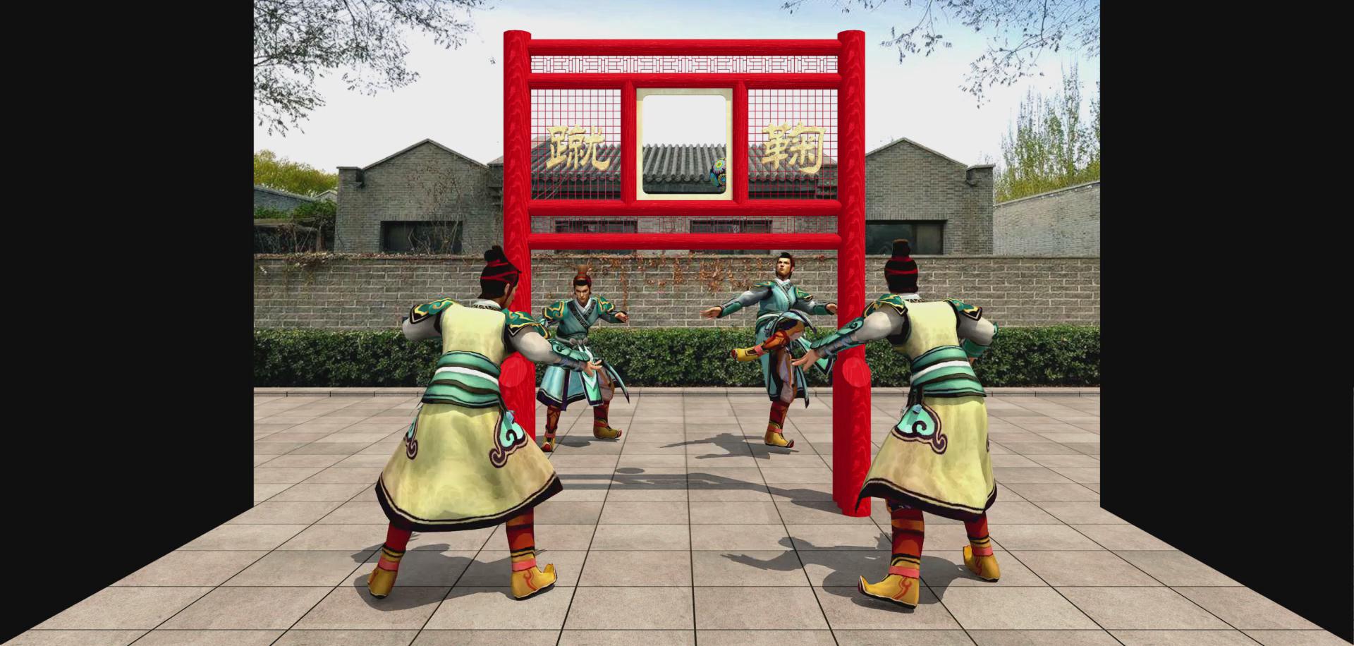蹴鞠就是指古人以腳蹴、蹋、踢皮球的活動,類似今日的足球。據史料記載,早在戰國時期中國民間就流行娛樂性的蹴鞠游戲,而從漢代開始又成為兵家練兵之法,宋代又出現了蹴鞠組織與蹴鞠藝人,清代開始流行冰上蹙鞠。因此,可以說蹴鞠是中國古代流傳久遠、影響較大的一朵體育奇葩。2006年5月20日,蹴鞠已作為非物質文化遺產經國務院批準列入第一批國家級非物質文化遺產名錄。 該影片展現了蹴鞠的風采,兩兩組隊自成兩隊,折幕展示形式使得效果立體,仿佛觀看了一場實時的蹴鞠比賽,十分有趣。